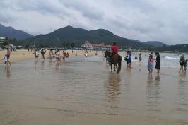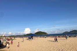 游览后我们来到今晚住的海湾【日月湾】,日月湾依山傍水,北面有山岭环抱,南濒南海,是个半月形的海湾,海湾沙滩洁白松软细柔,海面风平浪静,海水湛蓝清澈,适宜游泳,是个天然海水浴场,更是中国著名的冲浪胜地。