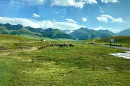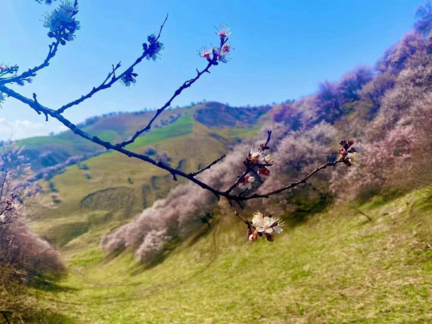 第一站:霍城大西沟,没有见过伊犁的杏花林,不算经历过新疆的春天,每年四月春风吹进伊犁河谷唤醒沉睡了整个冬季的杏花。入目便惊叹这浓烈的绿与杏花的粉,竟如此相得益彰。