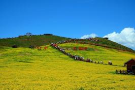 门源油菜花位于门源县,是青海省及西北地区的主要油料产区,由此,这里的油菜花也成为了一种美丽而蔚为壮观的人造景观。另外,这里油菜花的种植范围是,它西起浩门河畔的青石嘴,东到大通河畔的玉隆滩,北到与甘肃省交界的冷龙岭