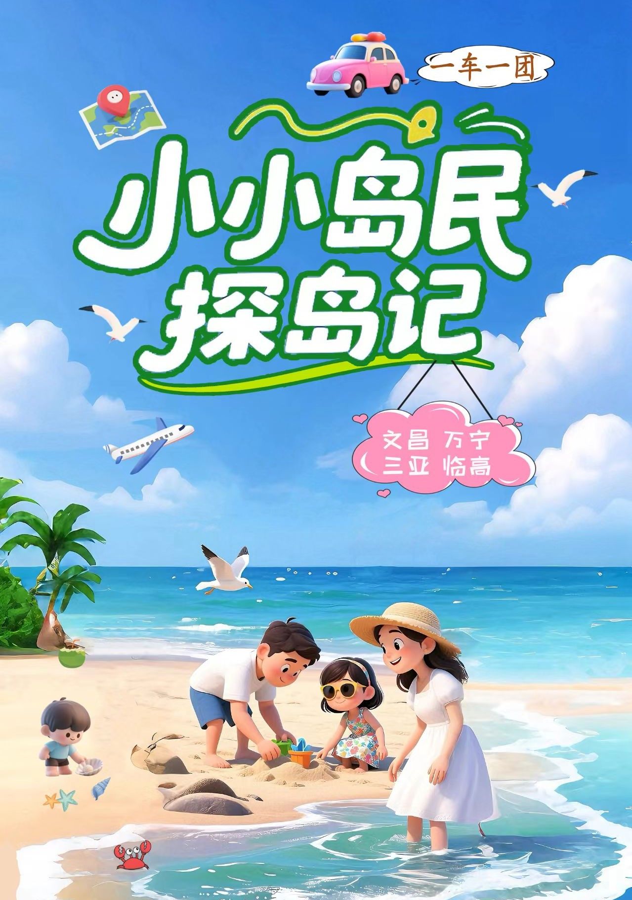4-6人小小岛民探岛记6日海南环岛游:海口-文昌-滨海公路-加井岛-三亚-帆船出海-大小洞天-临高6