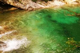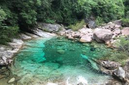 翡翠谷景区在黄山的东部,又称“情人谷”,谷中之水源出炼丹峰、始信峰,游人可至的景区有6000米长,峡谷中分布着大小彩池数百个,有40余个彩池的面积超过100平方米,最大的彩池面积近1000平方米。
