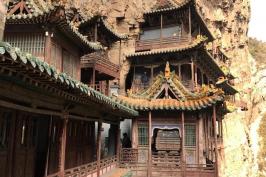 悬空寺位于山西省大同市浑源县恒山金龙峡西侧翠屏峰的峭壁间,素有“悬空寺,半天高,三根马尾空中吊”的俚语,以如临深渊的险峻而著称。建成于1400年前北魏后期,是中国仅存的佛、道、儒三教合一的独特寺庙。