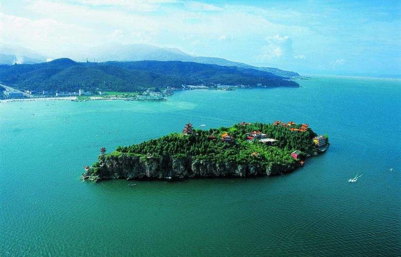 6、抚仙湖:因湖水清澈见底、晶莹剔透,被古人称为“琉璃万顷”。湖面海鸥成群,游船点点,碧波荡漾,夕阳西下景色煞是好看。