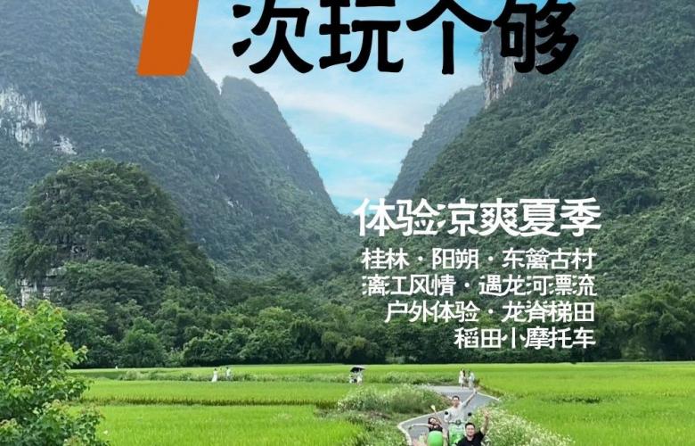 桂林集合桂林深度7日自驾游:东篱古村-漓江-遇龙河漂流-龙脊梯田-稻田小摩托车7日亲子游