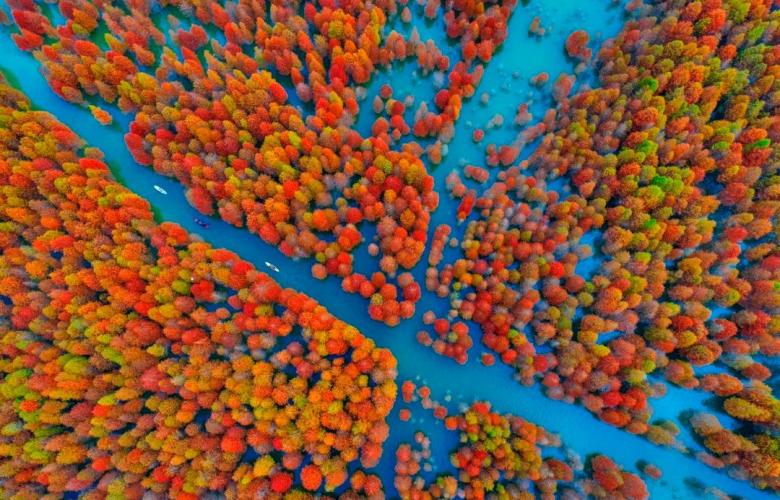 它不仅有诗意的古村落,有炊烟袅袅的田园风光,更有2000余亩金黄火红落羽红杉林。
